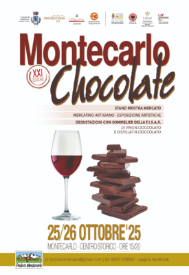 - Montecarlo Chocolate a Montecarlo (25-26 ottobre): l’antico borgo si trasforma in una cioccolateria a cielo aperto per gli appassionati del “cibo degli dei”. Perfetto per un pomeriggio goloso.